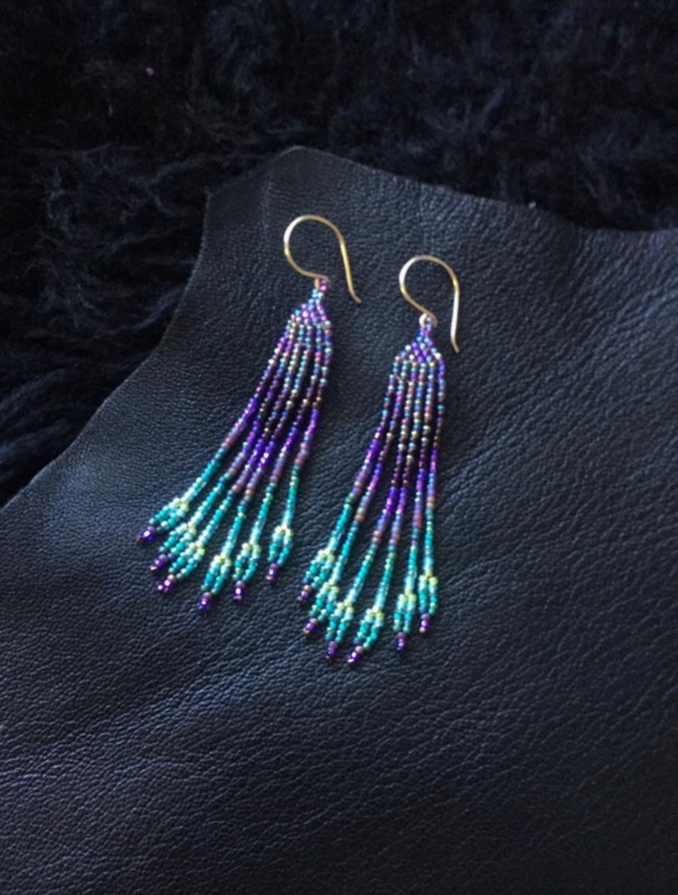 Tiny "Maui Fire Water Drops" ~ 4" long Delicate Seed Bead Handmade Earrings